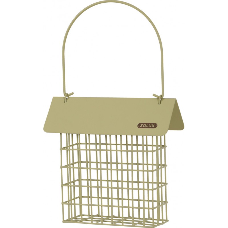 Support pour pain de graisse avec toit. Coloris pastel très tendance. Réalisé en métal de qualité pour plus de solidité. Le toit permet de protéger les pains de graisse de la pluie. Le support dispose d'une poignée afin de pouvoir le suspendre facilement.|