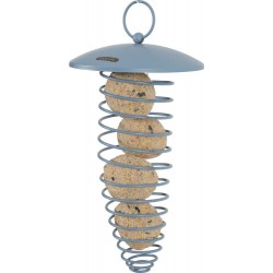 Distributeur, support de boule de graisse en forme de spirale avec toit. Coloris pastel très tendance. Finition mate. Réalisé en métal de qualité pour plus de solidité, il peut contenir jusqu'à 4 boules de graisse. Le toit permet de protéger les boules de graisse de la pluie. Le distributeur dispose d'un anneau permettant de le suspendre. Longueur du réservoir: 20cm. Longueur totale (avec l'anneau): 26cm.|