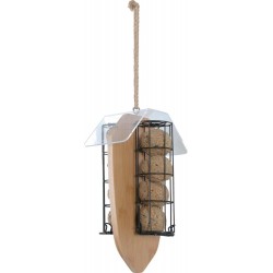 Il permet de mettre à disposition des oiseaux jusqu'à 8 boules de graisse (4 dans chaque compartiement).|