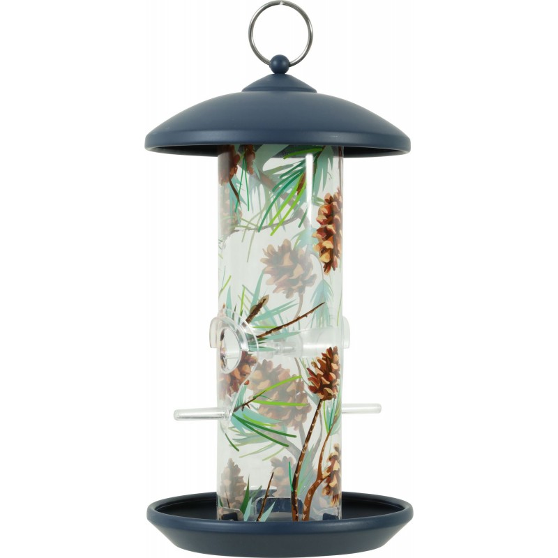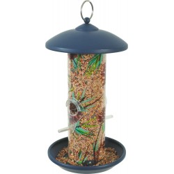 Mangeoire silo en plastique avec 2 perchoirs et un anneau en métal permettant de la suspendre. Les perchoirs sont vissés pour plus de résistance. La mangeoire silo vous permets de mettre à disposition environ 750g de graines pour les oiseaux du jardin (cette contenance peut varier en fonction du calibre des graines utilisées).|