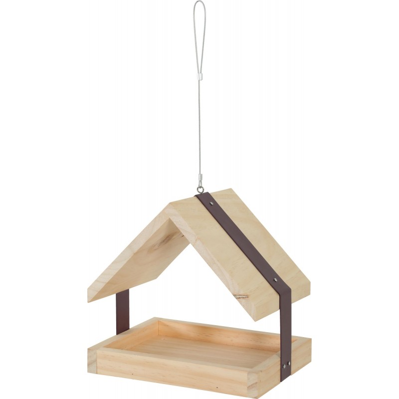 Mangeoire en bois avec toit pour les oiseaux du jardin. Bois massif certifié FSC d’une épaisseur de 15mm. La mangeoire permet de mettre à disposition environ 450g de graines (la contenance peut varier en fonction des graines utilisées). La mangeoire est fournie avec un lien en métal résistant afin de pouvoir la suspendre.|