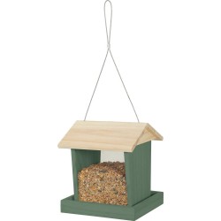 Mangeoire en bois avec toit pour les oiseaux du jardin. Bois massif certifié FSC d’une épaisseur de 9mm. La mangeoire permet de mettre à disposition environ 1,3 kg de graines (la contenance peut varier en fonction des graines utilisées). La mangeoire est fournie avec un lien en métal résistant afin de pouvoir la suspendre. Toit ouvrant permettant un remplissage par le dessus.|