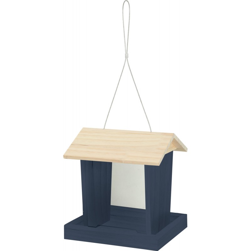 Mangeoire en bois avec toit pour les oiseaux du jardin. Bois massif certifié FSC d’une épaisseur de 9mm. La mangeoire permet de mettre à disposition environ 2,3 kg de graines (la contenance peut varier en fonction des graines utilisées). La mangeoire est fournie avec un lien en métal résistant afin de pouvoir la suspendre. Toit ouvrant permettant un remplissage par le dessus.|
