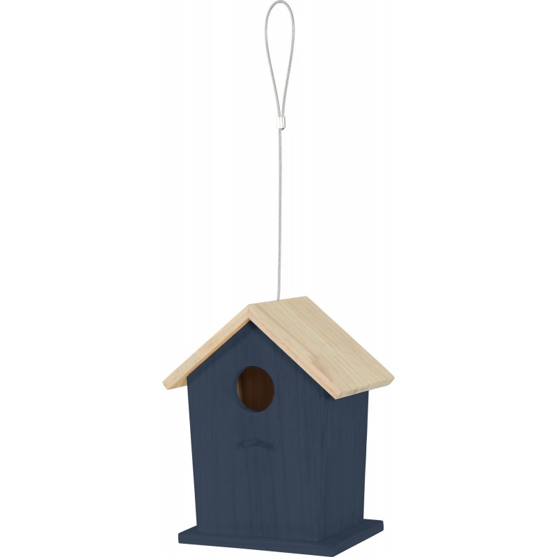 Nid en bois pour les oiseaux du jardin. Bois certifié FSC d’une épaisseur de 9mm. Ouverture: trou de 38mm de diamètre avec perchoir extérieur. Le nid est fourni avec un lien en métal résistant afin de pouvoir le suspendre.|