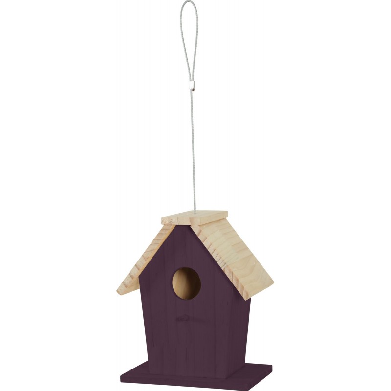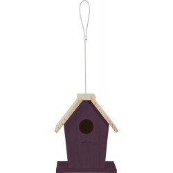 Nid en bois pour les oiseaux du jardin. Bois certifié FSC d’une épaisseur de 9mm. Ouverture: trou de 38mm de diamètre avec perchoir extérieur. Le nid est fourni avec un lien en métal résistant afin de pouvoir le suspendre.|