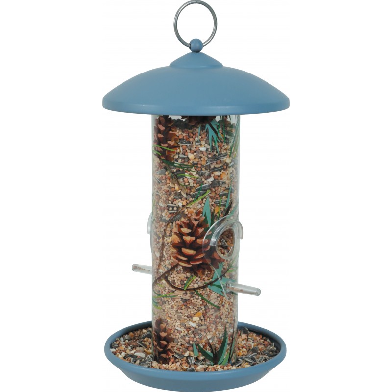 Support avec motif pomme de pin avec double perchoirs pour aliments destiné aux oiseaux de la nature. Produit porteur du label 1% pour les animaux|