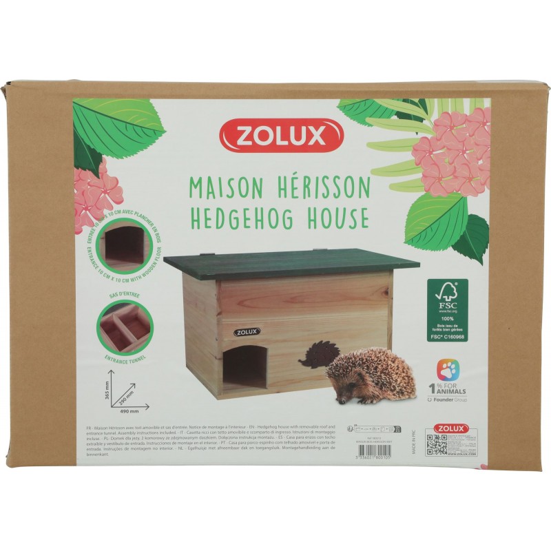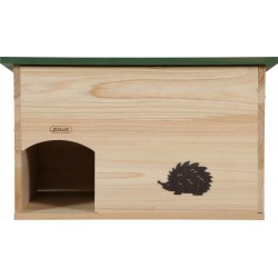 Maison en bois pour hérisson. Toit amovible pour faciliter le nettoyage. Un mur sépare la maison en deux compartiments et représente une protection supplémentaire contre les prédateurs. En effet l'entrée du labyrinthe (10x10cm) protège des hôtes indésirables (chats, renards, etc...). Produit livré en kit à monter soi-même. Montage simple et rapide grâce aux instructions, vis inclues.|