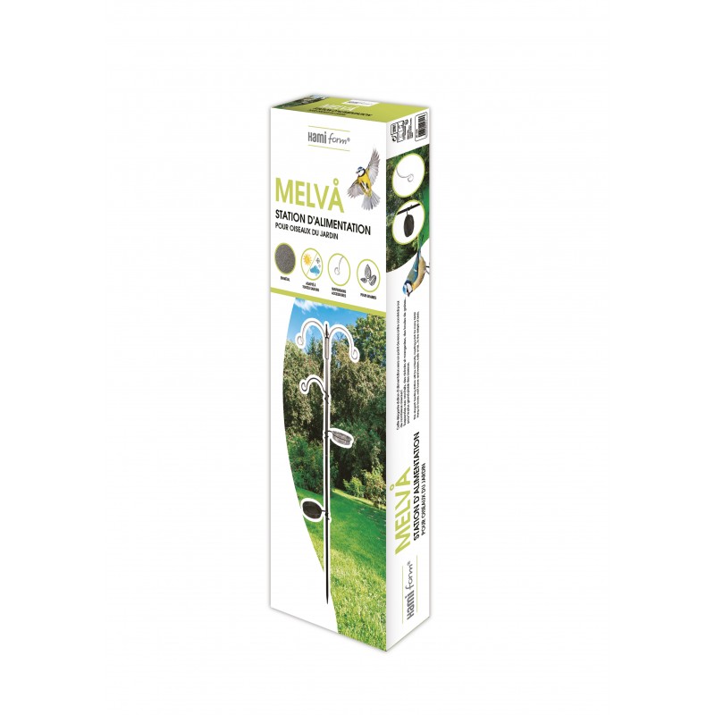 La disposition du crochet amovible et des écuelles est réglable pour s'adapter au mieux à votre jardin et l'écuelle pour aliment est dotée de perforations pour permettre à l'eau de pluie de s'écouler.