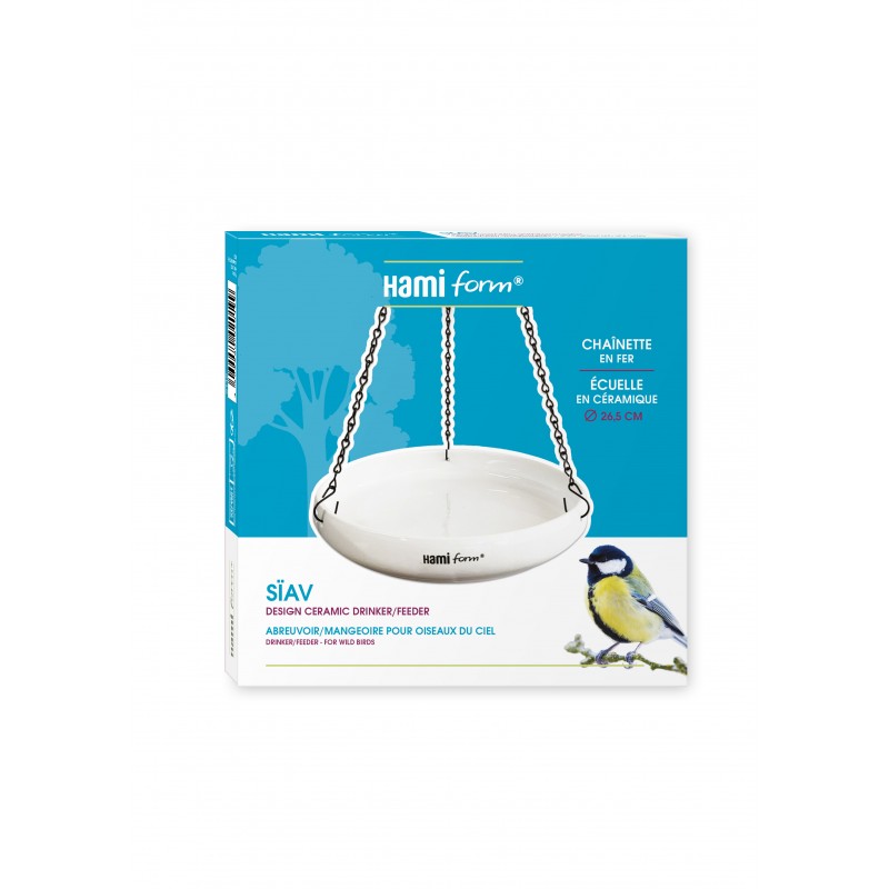 Cet élégant abreuvoir SIAV en céramique et au design épuré, apportera tout le confort aux oiseaux qui aiment s'gydrater ou se baigner. Double version, abreuvoir ou mangeoire, SIAV s'adapte. Sa chaïnette vous permettra une installation facile et une résistance à toutes les intempéries|