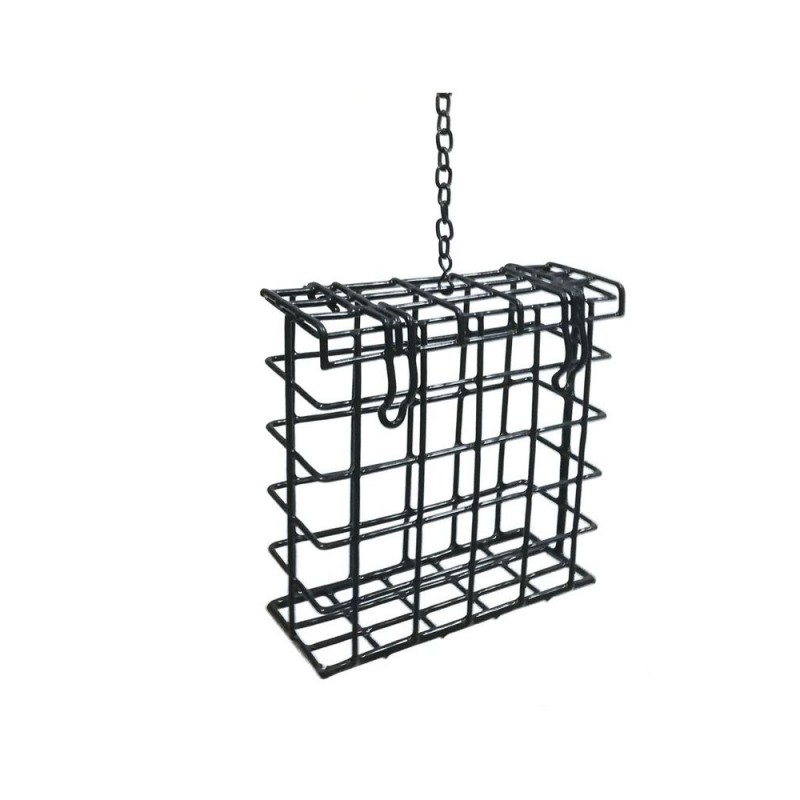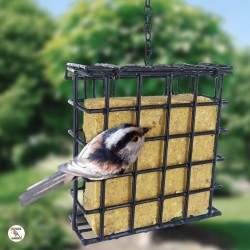 Mangeoire pour 1 repas de graisse. Attire principalement les oiseaux omnivores: moineaux, rouge-gorges, verdiers, sittelles torchepots, mésanges et pics. Mangeoire et chaînette de suspension en acier.|