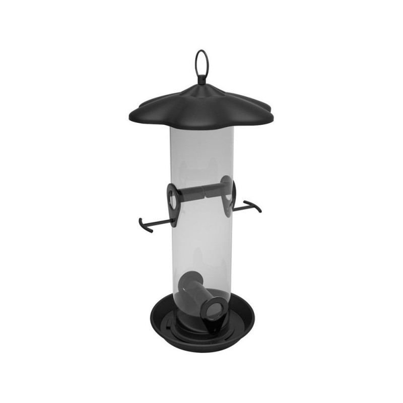 DESCRIPTION: Tube 4 postes. Base et toît facilement démontable pour remplissage et nettoyage aisés. Perchoirs en 'T' en acier pour une position naturelle de l'oiseau, plus sécurisante.