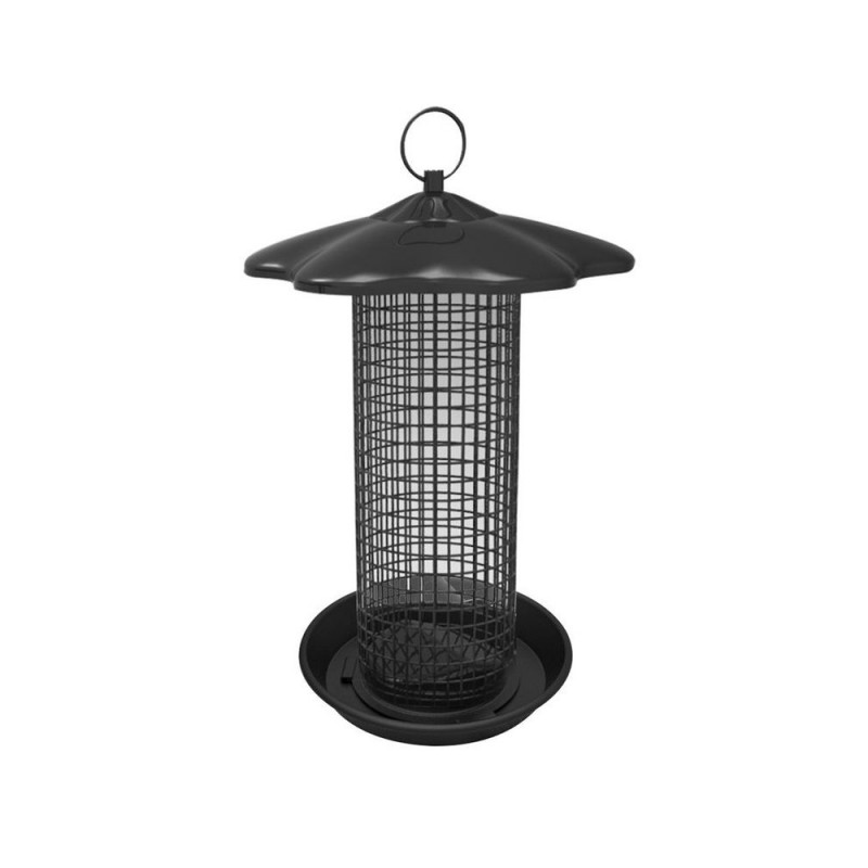 DESCRIPTION: Mangeoire pour cacahuètes. Base et toît facilement démontable pour remplissage et nettoyage aisés. A suspendre.