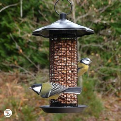 Mangeoire tubulaire grillagée pour cacahuètes.