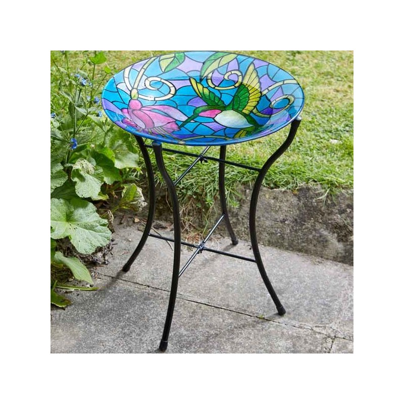 Adorable bain á oiseaux en verre peint à la main