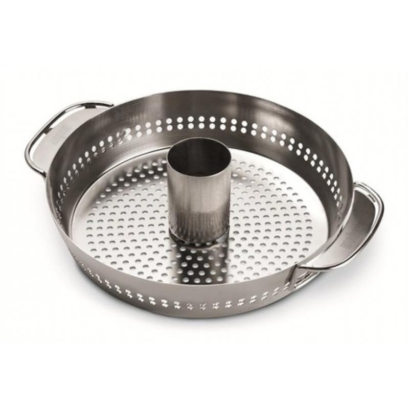 Le puit intérieur contribuent à hydrater la volaille et à l'imprégner de saveur. Le pourtour de l'accessoire offre assez d'espace pour cuire des légumes autour de la volaille, les perforations permettent à la chaleur de pénétrer et à la graisse de suinter