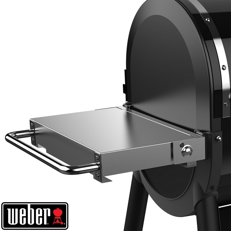 Préparez, servez et gardez les ustensiles de cuisson à portée de main grâce au plan de travail en acier inoxydable SmokeFire. Ouvre-bouteille intégré. Se replie facilement lorsqu'il n'est pas utilisé et peut être utilisé pour ranger la planche à découper Weber.
