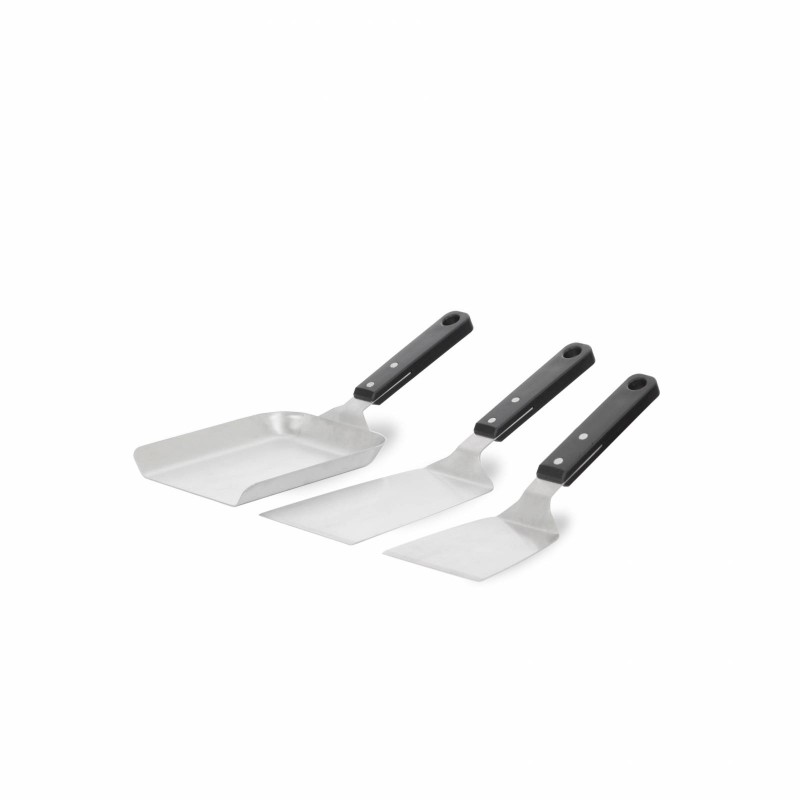 En inox, ce kit LE MARQUIER est composé d'une spatule AGR85, d'une spatule longue AGR87 idéale pour manipuler les filets de poisson et d'une spatule maxi à rebords AGR88 indispensable pour cuire tous vos légumes coupés, moules ou autres petits aliments sur votre plancha.