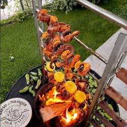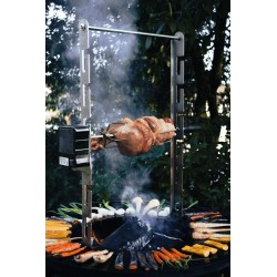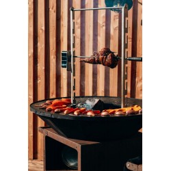 Parfaite pour rôtir vos aliments au feu de bois, cette rôtissoire assure une cuisson parfaitement uniforme grâce à son tournebroche, optimisant la répartition de la chaleur sur vos viandes ou légumes. Sa crémaillère en acier inoxydable, résistante à la chaleur, se fixe solidement au foyer du brasero, offrant une stabilité maximale pendant la cuisson. La rôtissoire comprend une broche robuste, une paire de fourchettes à 2 piques et à 4 piques pour sécuriser vos préparations, et un crochet pratique pour suspendre une marmite ou des aliments à fumer, permettant ainsi de diversifier vos modes de cuisson. Ce système polyvalent vous offre non seulement une cuisson traditionnelle au feu de bois, mais aussi la possibilité de fumer vos aliments pour des saveurs uniques et intenses.|