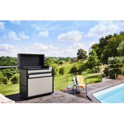 Capot acier revêtement 3 couches pour plancha Premium 75 Fixations avec charnières sur l’arrière du chariot|