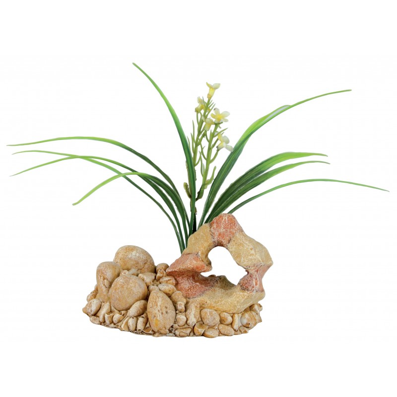 Offrez ce décor en polyrésine à votre poisson afin d'embellir son environnement! Cette plante artificielle accompagnée de roche apportera de la gaité et de la couleur dans votre aquarium. De plus, ce décor sera une cachette idéale pour votre compagnon.|