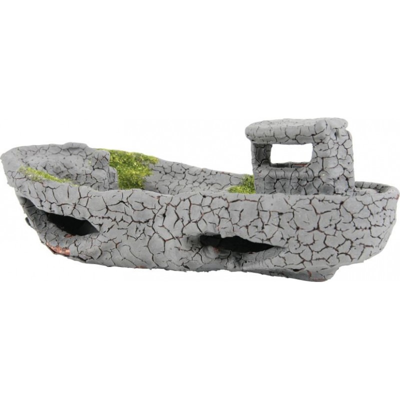 Décor Epave en céramique pour aquarium, inspirés des paysages sicilliens après l'éruption du volcan ETNA. Le boulet est recouverte d'une mousse synthétique. Etant creuse, elle peut également servir de cachettes pour les poissons.|