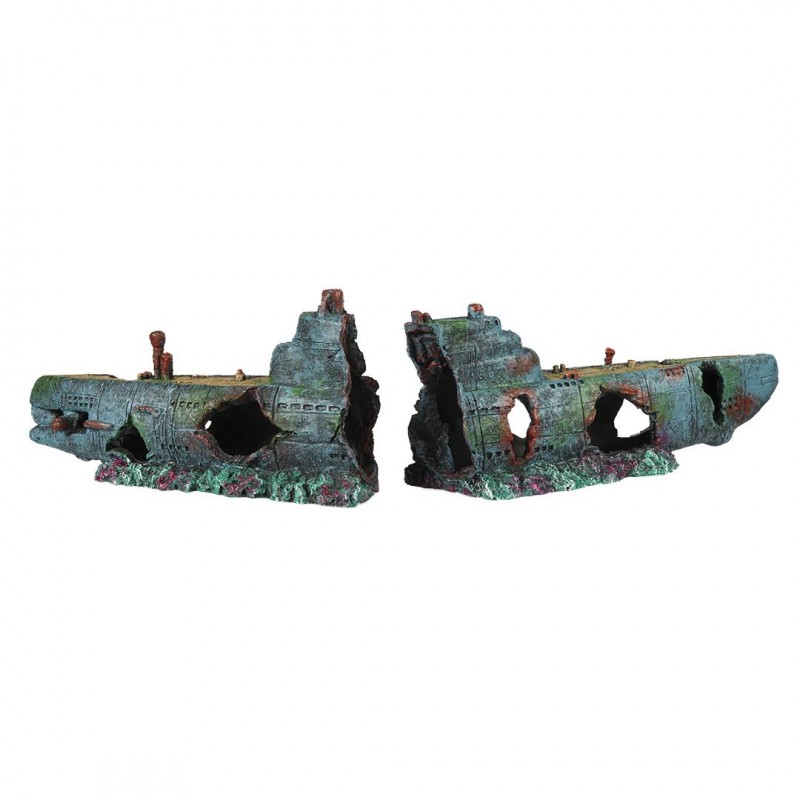 Ce sous-marin détruit est une décoration d'aspect naturel d'Aqua Della qui est fabriquée en résine de polyester. Ce matériau est parfaitement sain et n'exerce aucun impact sur l'équilibre biologique de votre aquarium. La décoration est adaptée aux aquariums d'eau douce et d'eau salée. Conseil : déballez prudemment la décoration et rincez-la à l'eau chaude. Attention : ne pas utiliser de savon, de nettoyant universel ou d'autres produits de nettoyage (par exemple : peroxyde d'hydrogène, diluant, térébenthine).