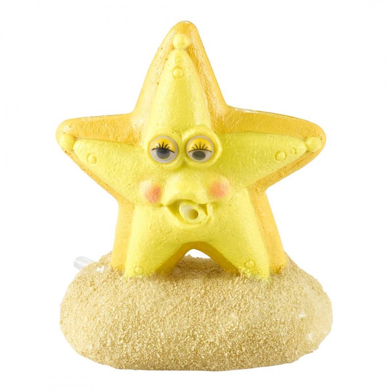 Cette étoile de mer est un ornement de la série Action Air d`Aqua Della. Ces animaux caricaturés sont munis d`un tuyau pour pouvoir être raccordés à une pompe à air. Cette pompe favorise le niveau d`oxygène de l`eau et produit des bulles pour faire comme si les animaux les soufflaient. Ces ornements thématiques sont uniformisés pour reproduire le plus fidèlement possible cette ambiance. Cet ornement est fabriqué en résine de polyester. Il est absolument inoffensif et n`exerce aucune influence sur l`équilibre biologique de votre aquarium. La décoration est adaptée aux aquariums d`eau douce et aux aquariums d`eau de mer. Indication : retirez prudemment la décoration de la boîte et rincez-la à l`eau tiède. Attention : n`utilisez pas de savon, de nettoyants universels ou d`autres produits de nettoyage (par exemple : peroxyde d'hydrogène, diluant, térébenthine).