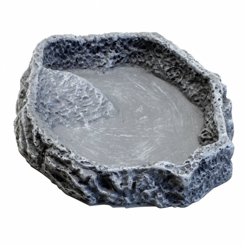 Écuelle pour nourriture, eau et baignade en terrarium. Aménagement personnalisé du terrarium: écuelle imitation pierre pour nourriture et eau ou pour la baignade Non toxique: résine colorée - aucun dégagement de substances nocives, nettoyage et désinfection faciles. Échelle de secours pour proies alimentaires tombées par mégarde Résine lourde pour éviter tout renversement involontaire. ReptilBar ' l'écuelle des terrariums. Disponible en différentes tailles et couleurs.|