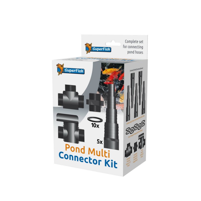 Kit complet pour le raccordement des tuyaux de bassin. Raccords Multi-step (Ø 20, 25, 32, 40 mm), joints, coupleur, pièce en T et robinet pour raccorder les tuyaux.|