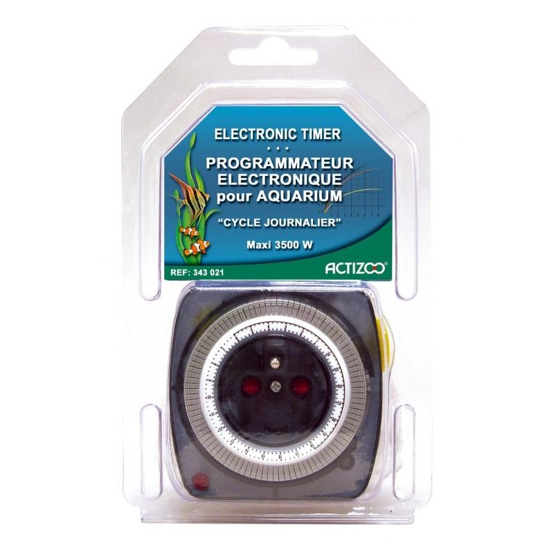 Programmateur électronique pour aquariums. Cycle journalier. Maxi 3500 W.Dimensions en mm: L 120Xl 80XH 195.|