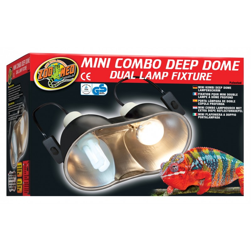 Le double mini deep dôme à réflecteur extra-long se prolonge au delà de la partie visible de la lampe l'empêchant de dépasser. Deux fixations en une . Idéal pour une utilisation avec des lampes ZooMed's PowerSun UV et des lampes fluorescentes compactes ReptiSun UVB. L'aluminium parfaitement poli de l'intérieur du plafonnier augmente considérablement la production d'UVB & UVAde plus de 30% ! Socle en céramique ! Utilisable avec deux lampes d'une puissance maximale de 2x100 watts.Deux interrupteur indépendants. Non compatible avec les éméteurs en céramique.|