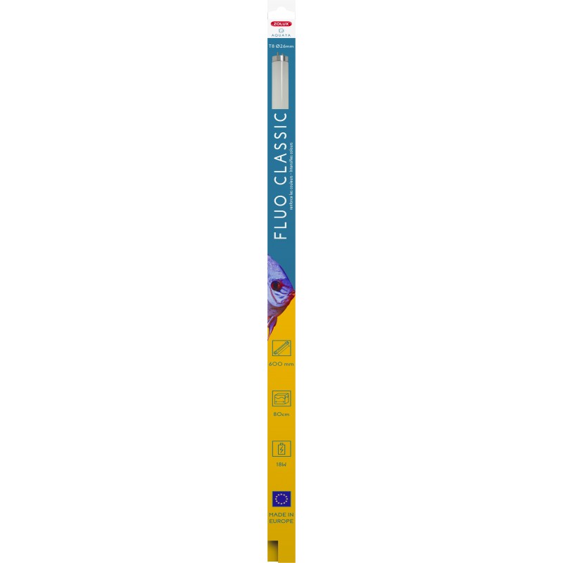 Tube fluo T8 pour eau douce et eau de mer. Sa température de couleur de 12000K correspond à la lumière tropicale intense offrant un rendu visuel contrasté et lumineux.