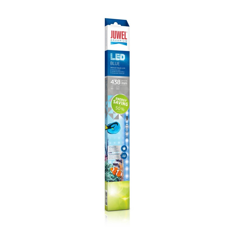 Le système d'éclairage économe en énergie LED Blue a été spécialement conçu pour simuler les conditions lumineuses des récifs de corail à env. 6 m de profondeur. Le spectre lumineux spécial permet de stimuler de façon ciblée la croissance des coraux. Tube BLUE 438 mm / 12 W,