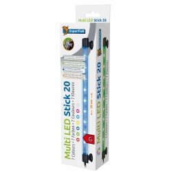 Le Multi LED Stick propose 7 couleurs différentes (rouge, vert, bleu, jaune, violet, bleu clair et blanc) et le mode changement de couleur automatique (démo). • Convient à la fois au-dessus et sous l'eau. • Étanche à l'eau (IP68) et 100% sûr. • LED économes en énergie (12 Volts, 4 Watts). • Facile à fixer au verre de l'aquarium en utilisant des ventouses. • Longueur: 40 cm.|