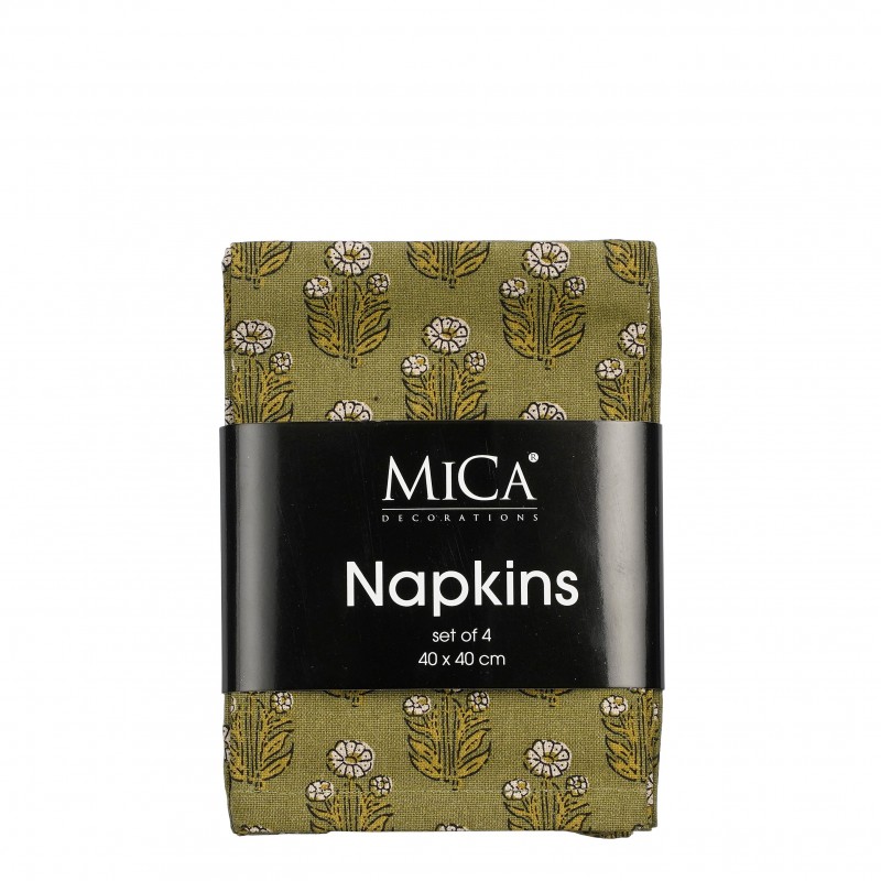 Serviette X4 Fleurs Darell Vert En 40X40-MICA DECORATIONS