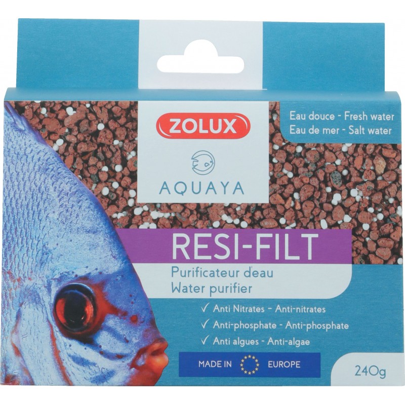 Résine épurative pour aquarium. C'est un très bon purificateur d'eau pour aquarium, avec action 'anti-algues' renforcée. Très bonne capacité d'absorption qui permet de réduire voire d'éliminer très rapidement les substances nocives de l'aquarium, comme les ammoniaques, les nitrites, nitrates, phosphates ou encore les silicates.|