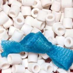 Dégradation biologique des polluants en aquarium eau douce/eau de mer: anneaux en verre fritté pour filtre d'aquarium. Épuration biologique intensive de l'eau: des microorganismes colonisent le média filtrant et éliminent les polluants. Surface de colonisation optimale pour microorganismes utiles grâce aux pores coniques et aux 5 mm de paroi des anneaux. avec diamètre de trou intérieur 5 mm. et sachet à remplir en filet|