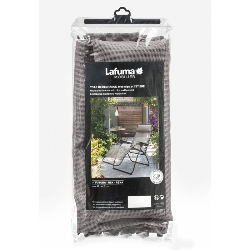 Garniture pour FUTURA clip. Kit Toile + têtière Toile Batyline© pour fauteuil relax FUTURA. Toile idéale pour une utilisation extérieure, jardin, terrasse ou bord de piscine. Fixation facile. Toile Batyline résistante à la déchirure, à l abrasion, aux UV, aux moisissures. Entretien facile, Séchage rapide.