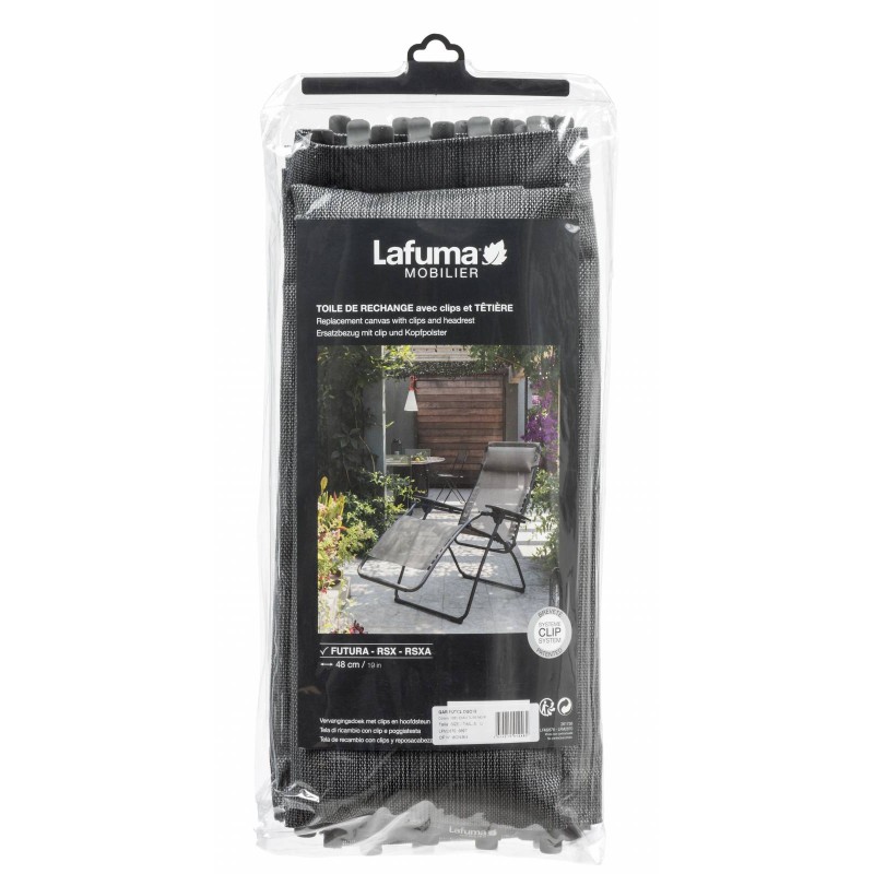 Kit toile Batyline® de rechange + têtière. Toile pour fauteuil relax FUTURA Clip. Fixation facile sur la structure. Toile Batyline résistante à la déchirure, à l abrasion, aux UV, aux moisissures. Entretien facile, Séchage rapide.
