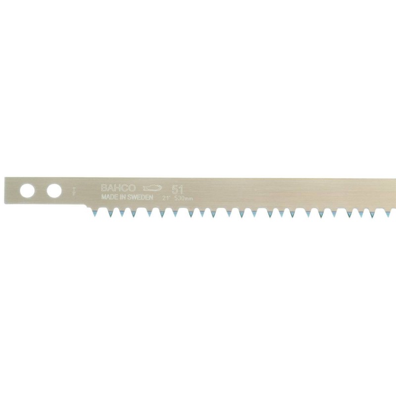 Lame 912 mm à denture isocèle en acier de haute qualité. Spécialement conçue pour le sciage dans le bois sec ou mort. Denture triangulaire avoyée, biseautée et trempée avec un double tranchant. Coupe à la fois en poussant et en tirant. Spécialement conçue pour le sciage du bois sec, et l'élagage saisonnier. Denture trempée Hard Point pour des performances longue durée