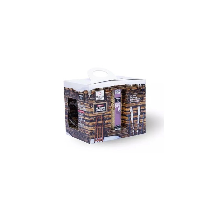 Coffret carton avec anse (1 mélange vin chaud et 2 tasses avec couvercles en liège)|