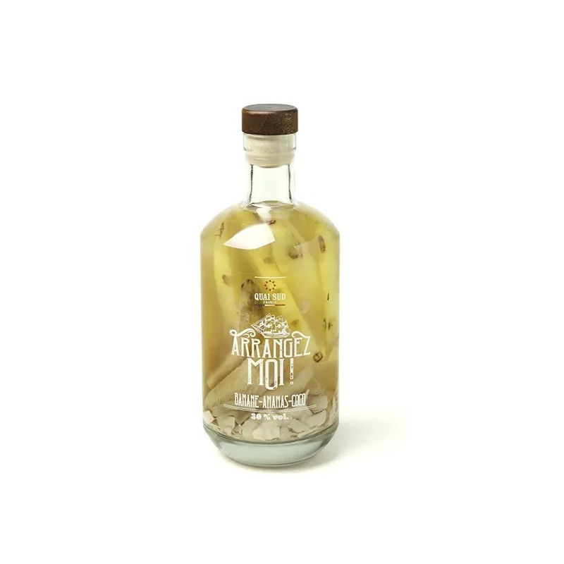 Découvrez notre rhum arrangé aux saveurs gourmandes qui vous transportent dans les îles C est un rhum blanc d exception que nous avons parfumé de larges tranches d ananas et de banane pour adoucir la puissance du rhum d une note fruitée. Quelques lamelles de coco agrémentent le tout de leur saveur suave… Délicieux A déguster pur ou façon ti punch les yeux fermés, pour se croire sous les cocotiers… Vous entendez la mer|