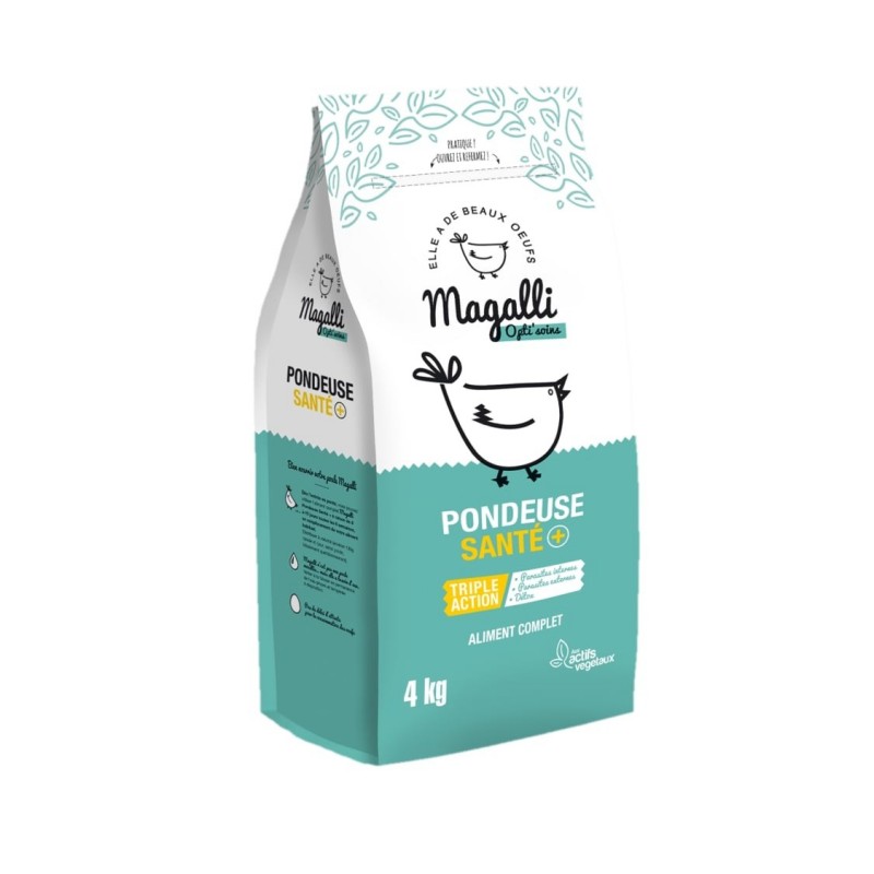L'aliment complet Magalli Poule Santé+ répond à tous les besoins nutritionnels de la poule et permet de soutenir et de protéger efficacement votre poule face à 3 situations indésirables mais courantes tout en continuant à consommer ses œufs sans aucun risque.