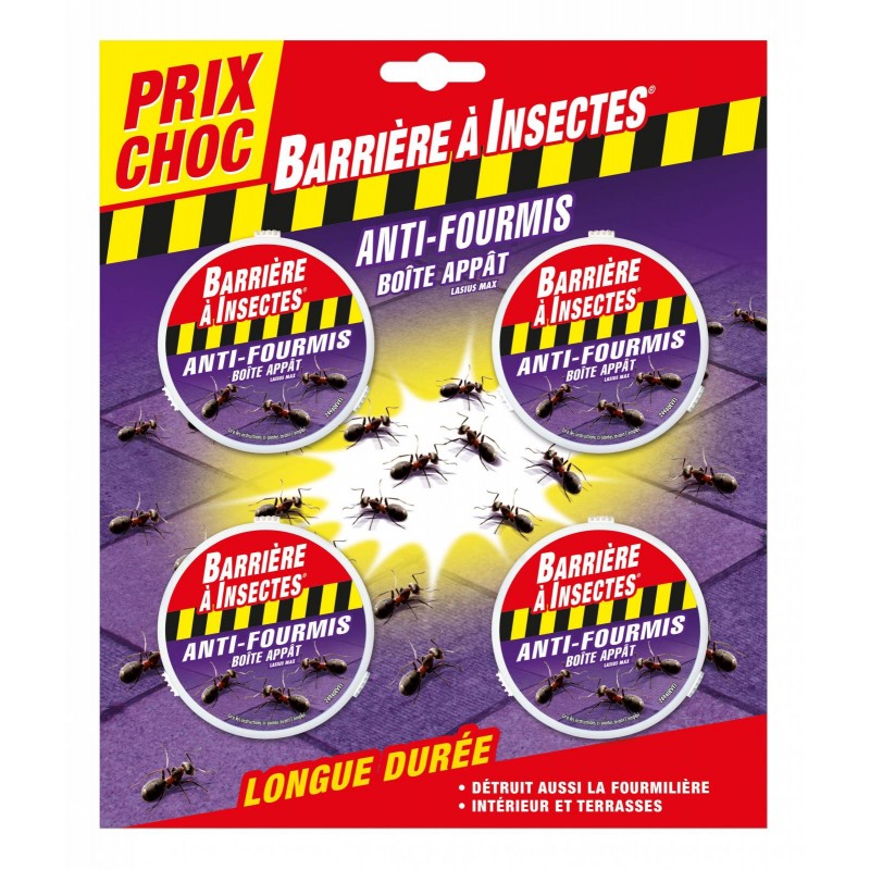 Anti-fourmis boîte appât. Contient un gel attractif qui permet de détruire toutes les variétés de fourmis et fourmilières par auto-empoisonnement. Action de choc et longue durée.