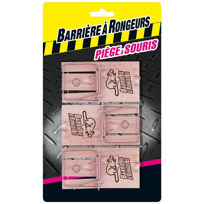 3 pièges à souris en bois. Avec crochet de fixation pour y déposer un appât tendre et appétissant (pain. fromage. chocolat. fruit?). Permet d?identifier les rongeurs à éliminer pour déterminer le traitement chimique approprié. Simple d?utilisation et économique.