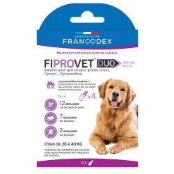 A utiliser contre les infestations par les puces seules ou contre celles par les puces et par les tiques. Puces: Traitement et prévention des infestations par les puces (Ctenocephalides felis). Une application prévient de toute nouvelle infestation pendant 7 semaines. Prévention de la multiplication des puces en empêchant le développement des oeufs de puce en puces adultes pendant 12 semaines après l'application. Le produit peut être intégré dans un programme de traitement de la Dermatite par Allergie aux Piqûres de Puces (DAPP) quand ce diagnostic a été préalablement réalisé par un vétérinaire. Tiques: Traitement des infestations par les tiques (Ixodes ricinus). Une application permet une efficacité acaricide qui persiste pendant 2 semaines contre Ixodes ricinus et pendant 4 semaines contre Dermacentor reticulatus et Rhipicephalus sanguineus. Si certaines espèces de tiques (Dermacentor reticulatus, Rhipicephalus sanguineus) sont présentes au moment de l'application, elles peuvent ne pas être toutes tuées dans les 48 heures.