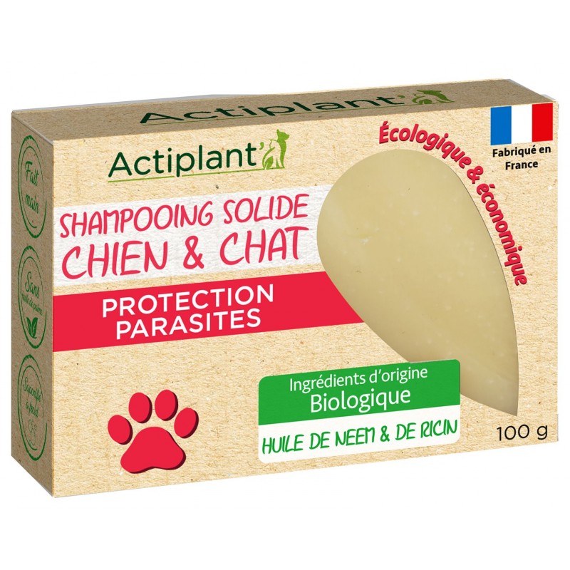 Formulé à base d’huile de neem, le shampooing solide Protection parasites Actiplant’ contribue à protéger votre animal des infestations des parasites externes. L‘huile de ricin adoucit et fait briller le pelage tout en respectant l’épiderme de vos animaux. Convient à toutes les races d’animaux.