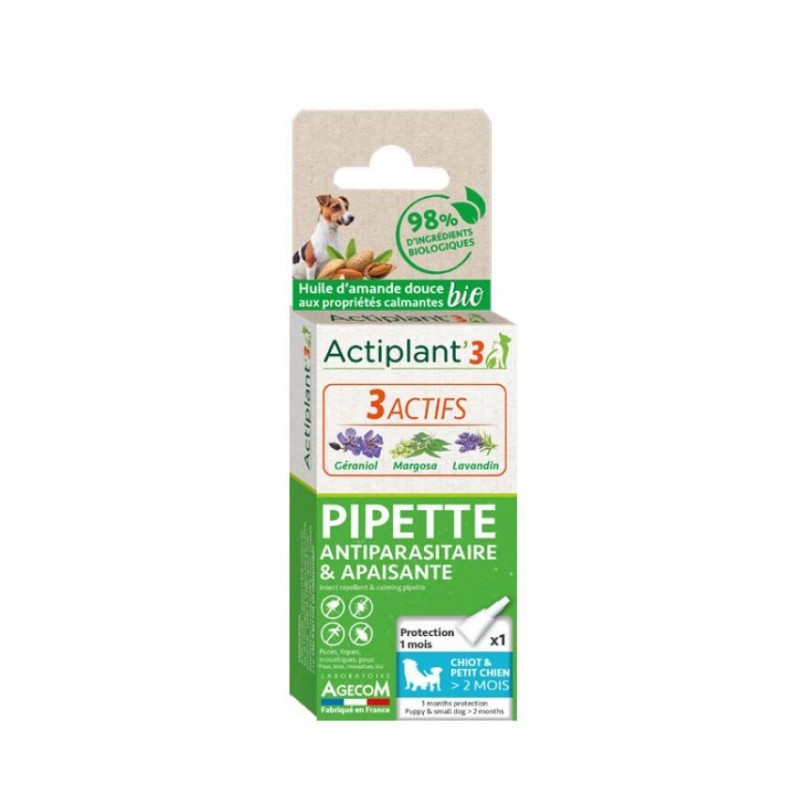 Pipettes antiparasitaires&apaisante 1 mois Chiot&petit chien>2 mois 3 actifs X1-1ML