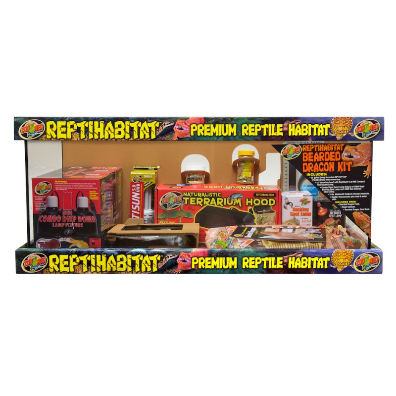 Kit pour débutant complet pour PogonasGalerie avec réflecteur 35 cm et lampe fluorescente 26 watts 5.0.Mini double deep dôme, basking spot 100W, lampe chauffante infrarouge 100W, Vita-sand outback orange 4,5KG, thermomètre à large plage, abreuvoir et gamelle , Reptisafe, Reptivite, Repticalcium, alimentation pour Pogona, guide du soin du pogona en anglais (téléchargeable en français sur le site)|