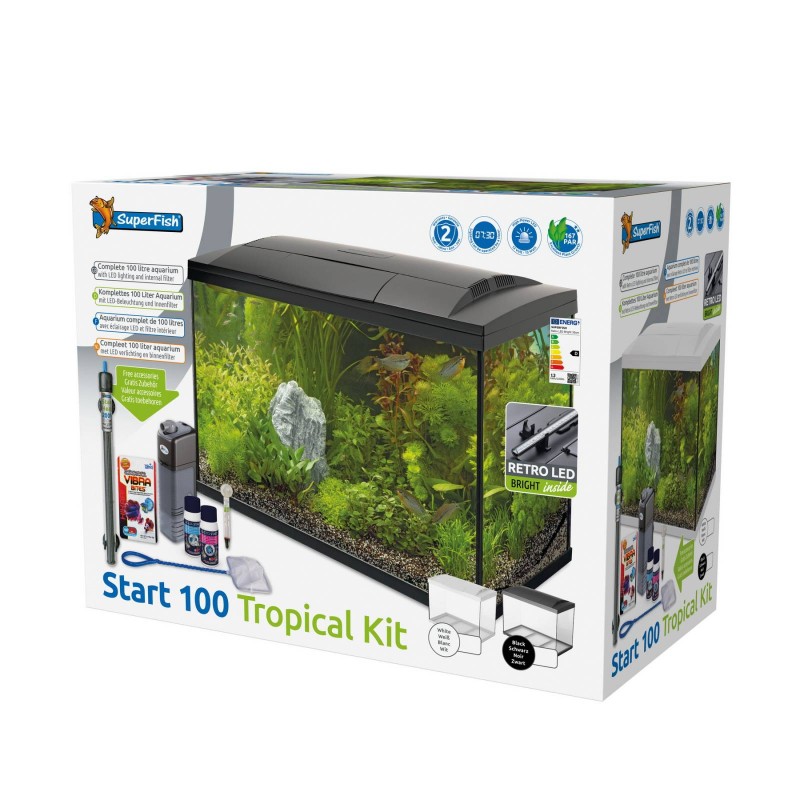 Les aquariums SuperFish Start sont des kits de démarrage complets et abordables avec un éclairage LED économe en énergie, un filtre intérieur et des accessoires pratiques pour dé-marrer le loisir de l'aquarium. Disponible en 6 tailles de 20 à 146 litres, comme aquarium de poissons rouges ou aquarium tropical. Les kits tropicaux sont fournis avec un chauffage d'aquarium!
